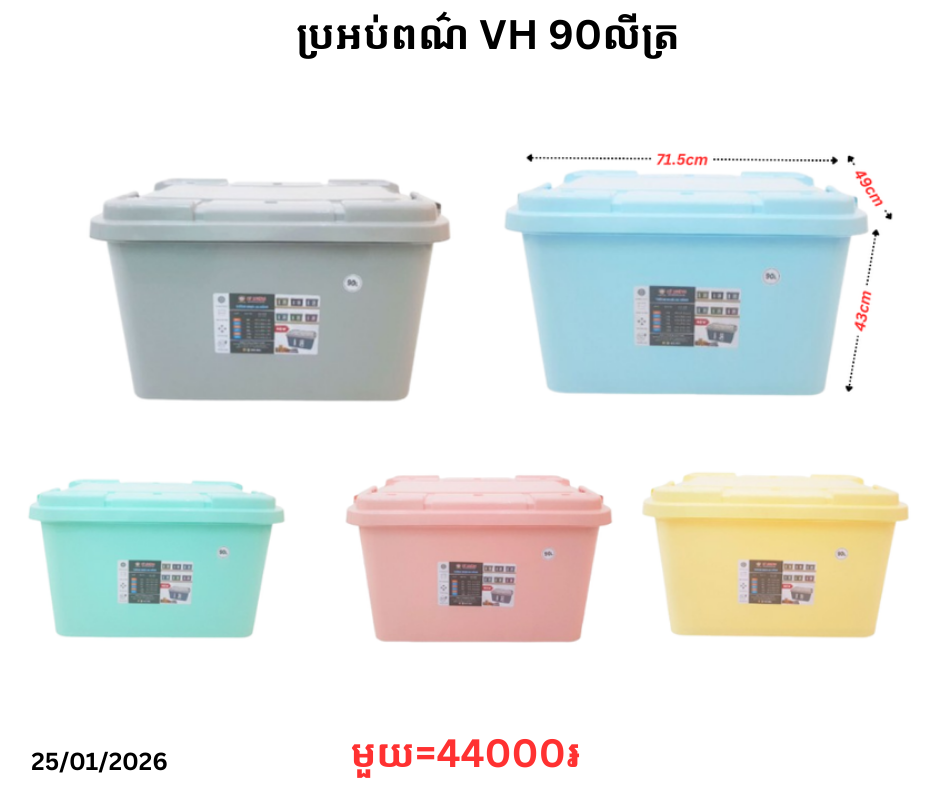 ប្រអប់ពណ៌ VH 90លីត្រ January 4, 2026 Posted in 42000, VH, ទំនិញថ្មី, ប្រអប់, ប្រអប់ខោអាវ, ប្រអប់ជ្រុងធំ, ប្រអប់ពណ៌, ប្រអប់ពណ៌ VH